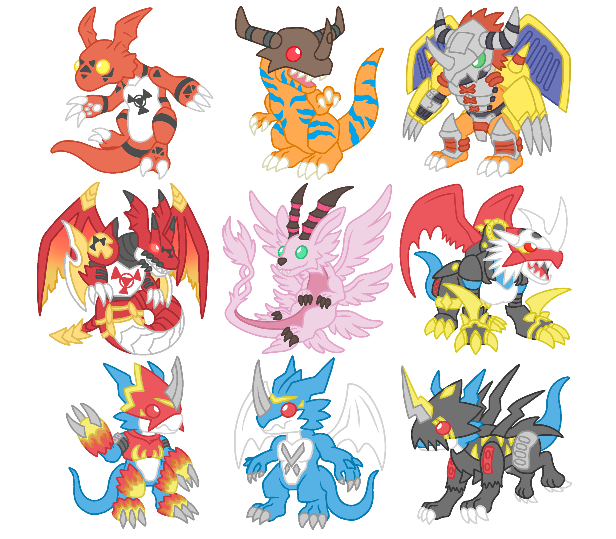 Your favorite Digimons, Greymon, Guilmon, Wargreymon, Megidramon, Magnadramon, Imperialdramon, Exveemon, Flamedramon, Raidramon, now available as cute 2 inch charms!