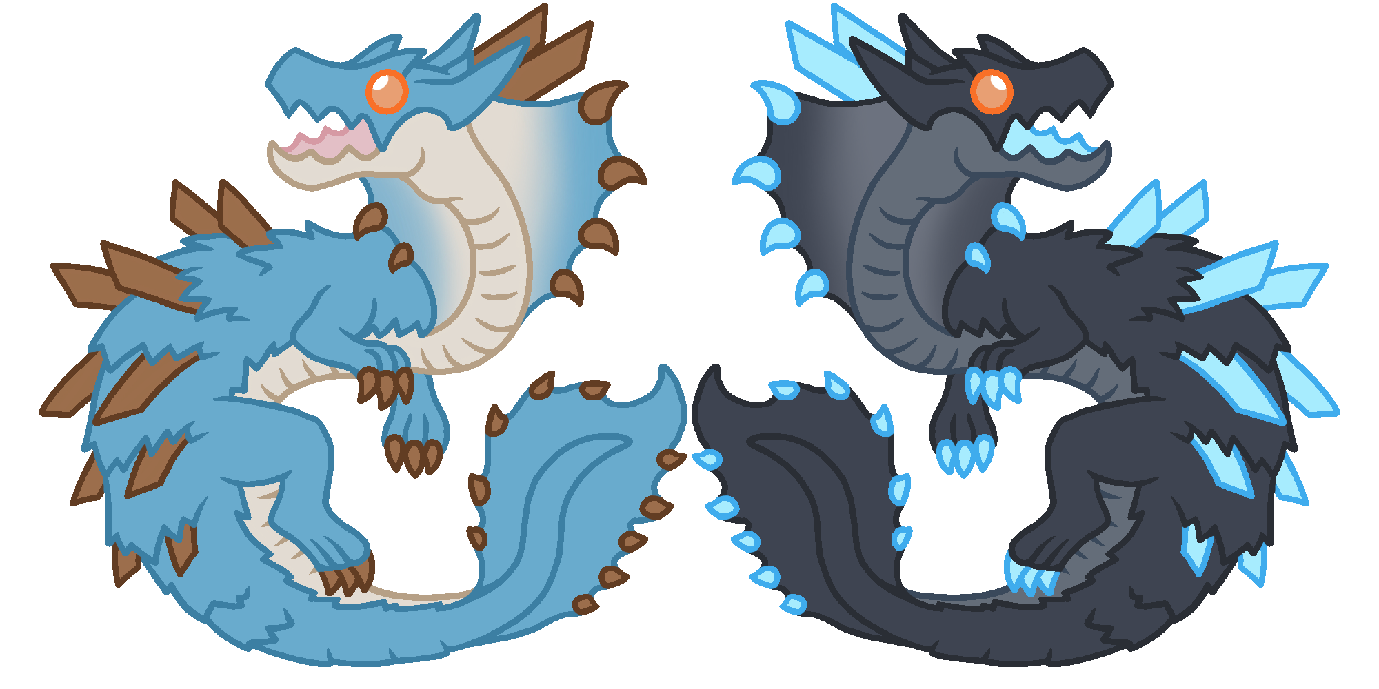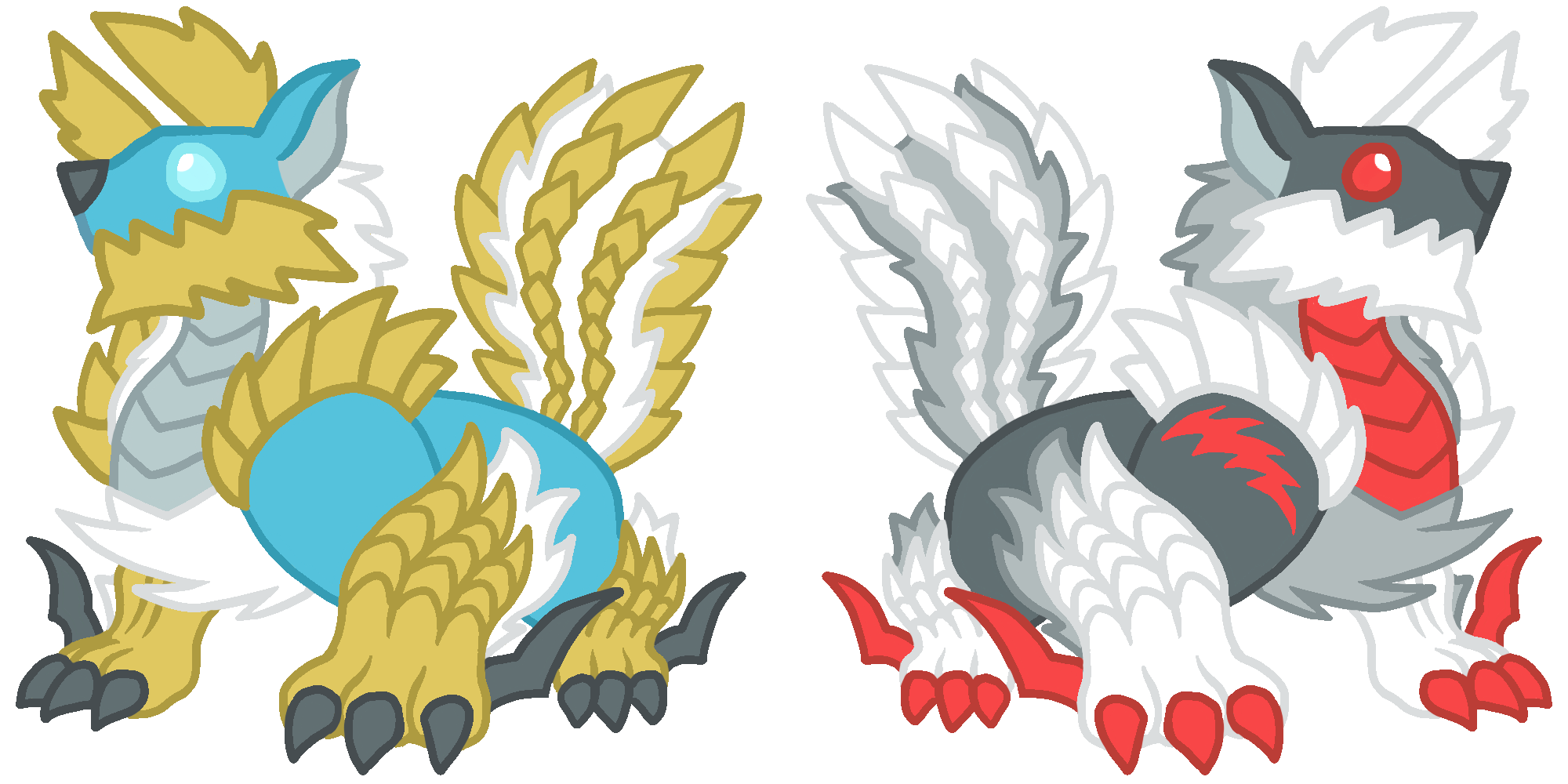 Your favorite Monster Hunter 3rd Generation dragons, Alatreon, Zinogre, Lagiacrus, Deviljho, Brachydios, and Barioth, now available as a cute 2 inch charms! These charms are double sided, double boarded clear acrylic so the art is protected!
