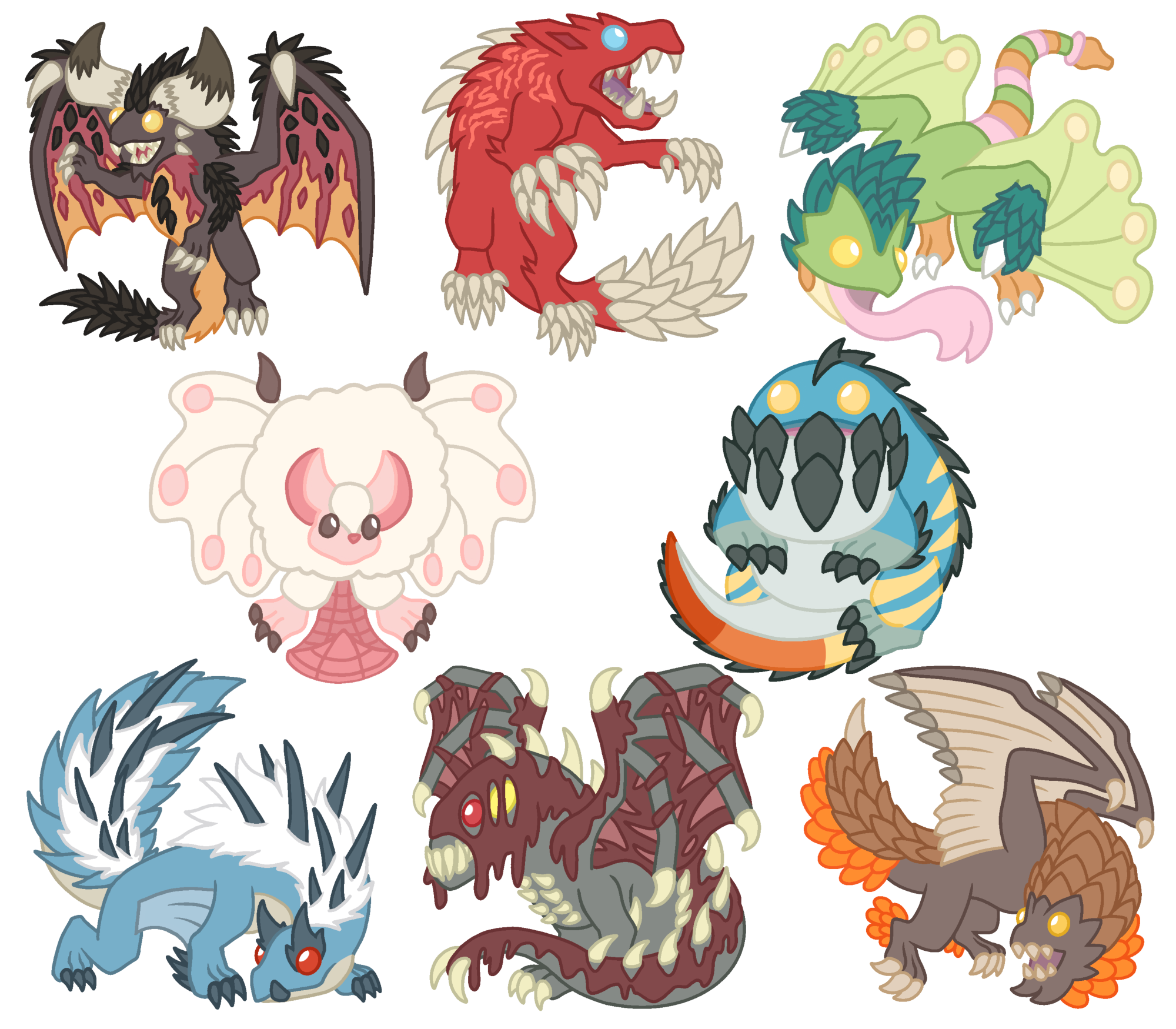 Your favorite Monster Hunter World dragons, Nergigante, Odogaron, Pukei-Pukei, Paolumu, Dodogama, Tobi-Kadachi, Vaal Hazak, and Bazelgeuse, now available as a cute 2 inch charms! These charms are double sided, double boarded clear acrylic so the art is protected!