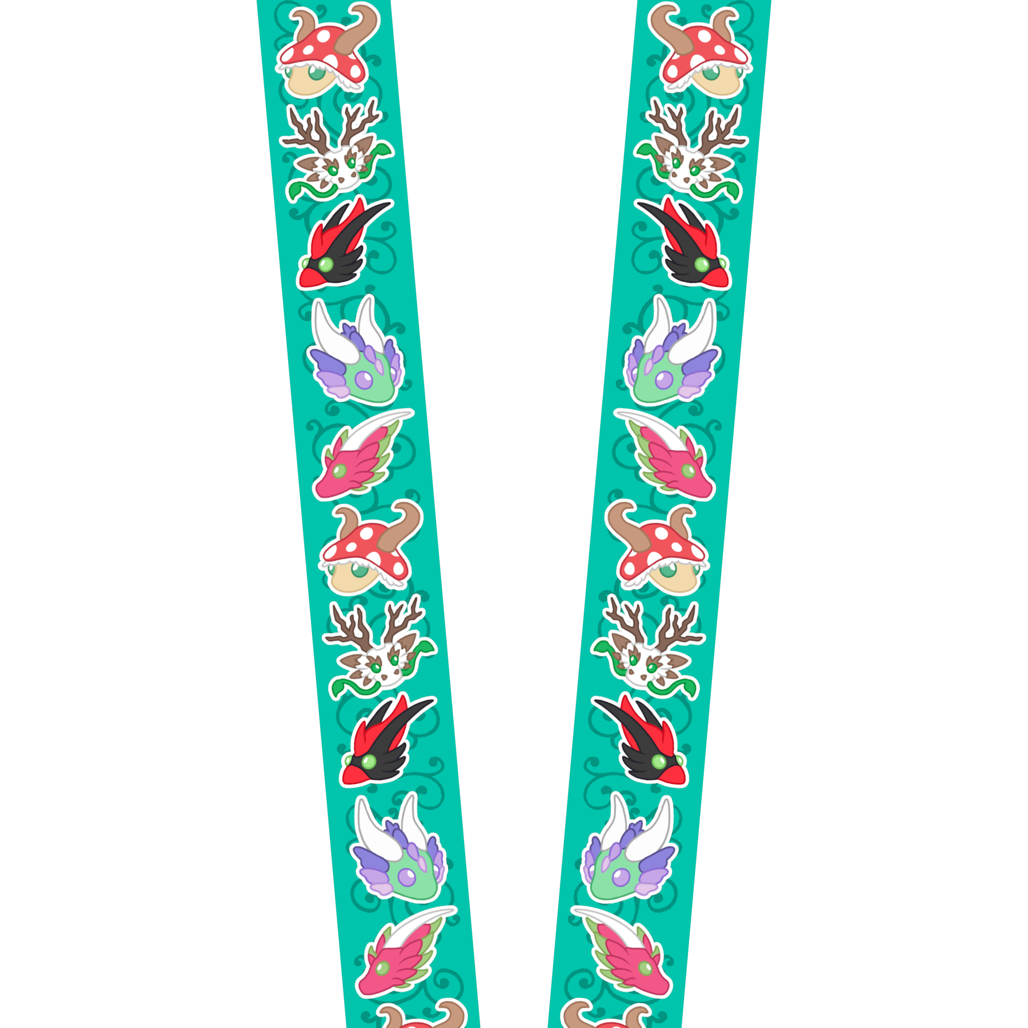 Original design dragons, Nature, Mushroom, Cardinal, Snapdwagon, and Dwagon Fruit, now available as a cute nature lanyard! These lanyards are double sided, 2 cm wide and 45 cm long with a clasp.
