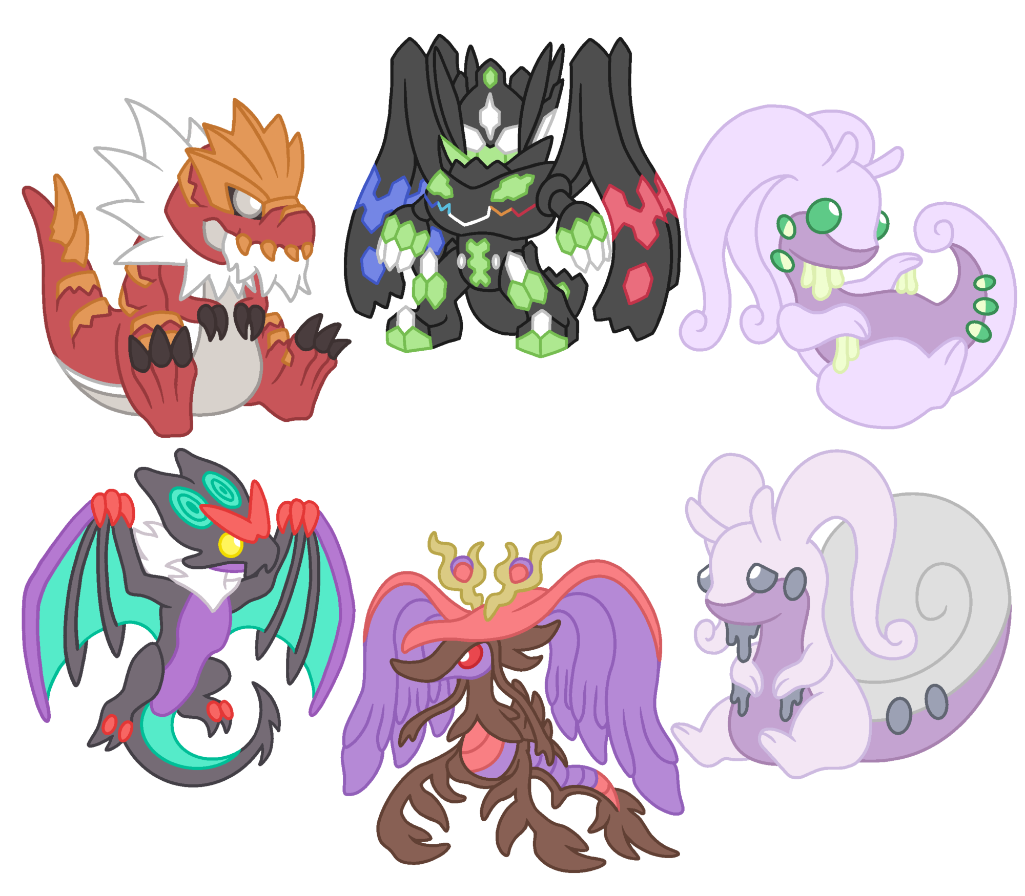 Your favorite Powke Mons X and Y dragons, Zygarde Complete Forme, Tyrantrum, , Goodra, Hisuian Goodra, Noivern, and Mega Dragalge now available as cute 2 inch acrylic charms! Grab the whole bunch for a discounted rate! These charms are double sided, double boarded clear acrylic so the art is protected! Includes a shiny version on the back and a keychain attachment!